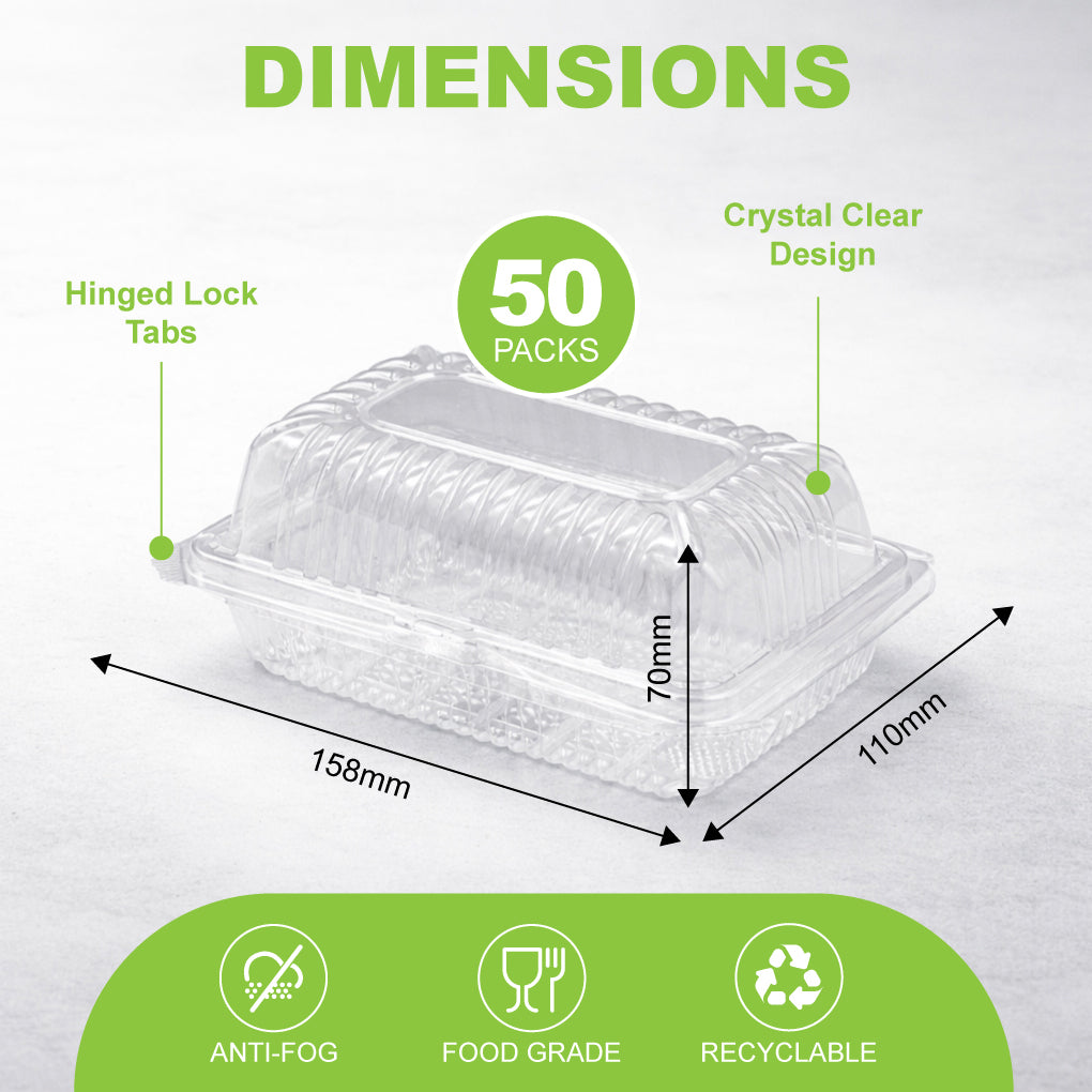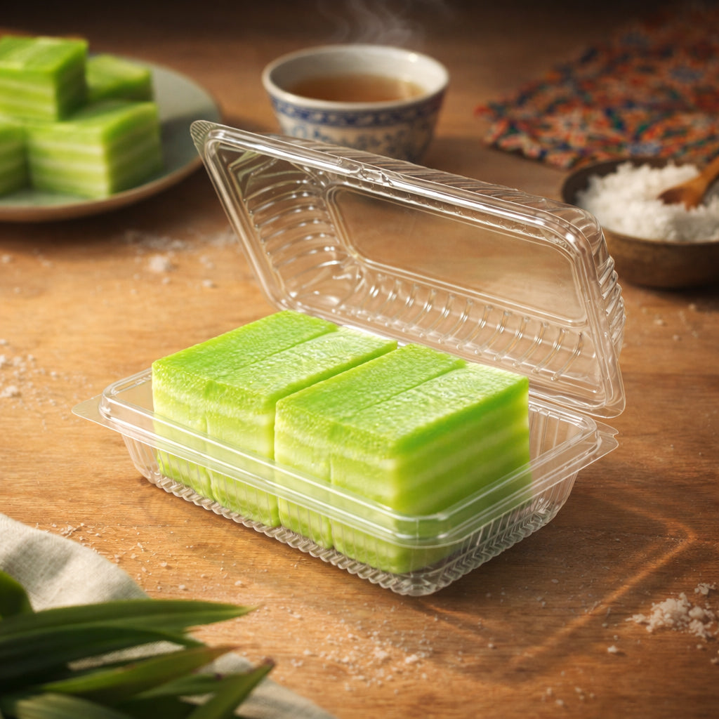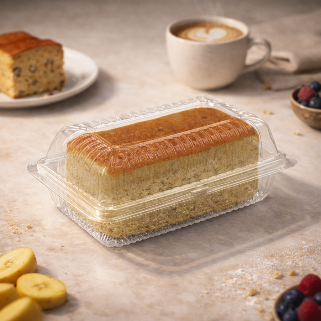 Made from high-transparency OPS material, it provides excellent visibility for pastries, cakes, and traditional desserts. The anti-fog design helps maintain a clean and clear presentation, while the secure locking clamshell ensures safe handling during transport.