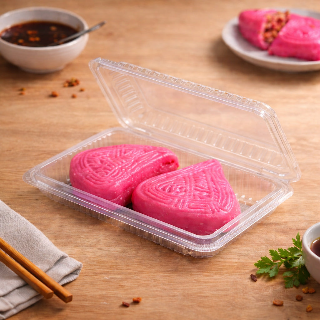 Made from high-transparency OPS material, it provides excellent visibility for pastries, kuih, and desserts. The anti-fog design ensures a clean presentation, while the lightweight clamshell structure allows for fast packing and easy handling during daily operations.