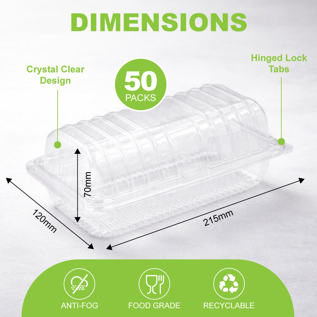 This clear rectangular swiss roll container (OPS-H78L) is designed for bakeries, dessert shops, and F&B businesses that require large-capacity packaging for takeaway and display.